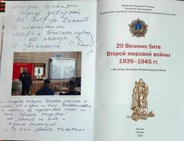 В своем выступлении Сергей Иванович сумел заинтересовать юных слушателей, интересно и подробно рассказывая о ключевых событиях Великой Отечественной войны. Книга, представленная автором, отличается лаконичностью и наглядностью, сохраняя при этом глубину и значимость содержания.