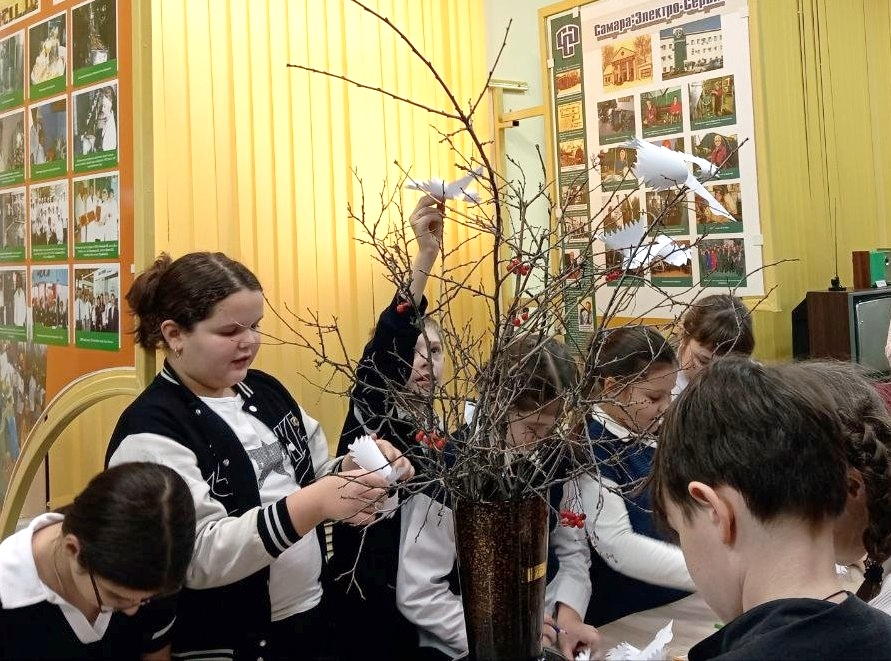 После проникновенной речи об этом дне минутой молчания почтили память павших, а затем, с трепетом, разместили созданных журавликов, чтобы они стали частью нашей общей памяти, напоминая нам о цене мира и о тех, кто его защищал. Пусть белые журавли нашей памяти всегда летят высоко, напоминая нам о подвиге и о важности мира на Земле.