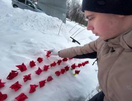 Сегодня, 13 февраля 2026 года, у мемориала, где в камне застыла скорбь целого поколения, расцвели алые тюльпаны.