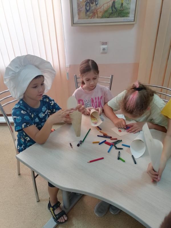 Изучив все тонкости приготовления мороженого, ребята аккуратно сделали "вафельный" рожок, а внутрь поместили фантастически красивые и "вкусные" шарики мороженого.