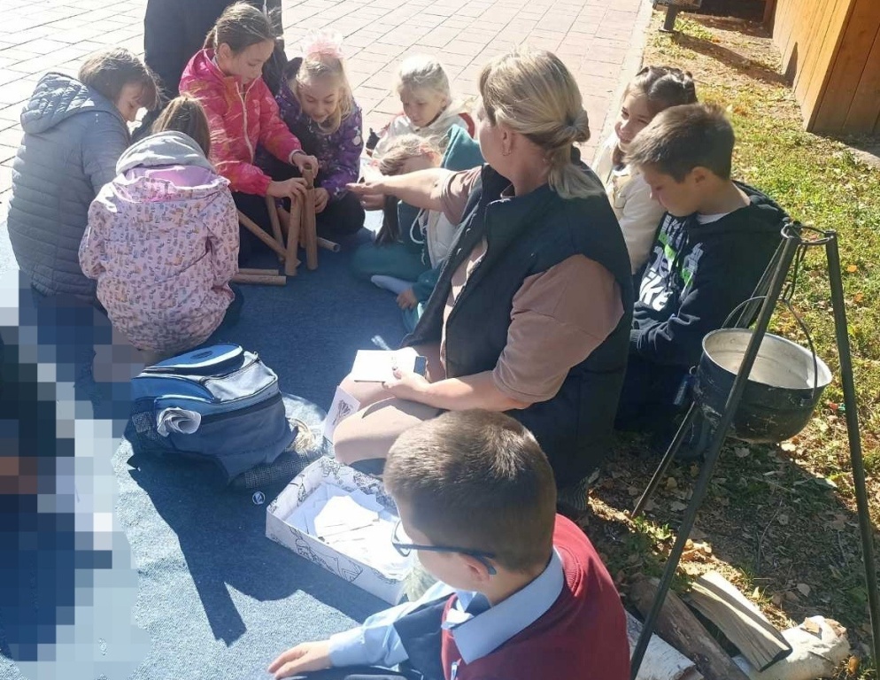 Юные путешественники мастерски завязывали туристические узлы и научили нас завязывать узлы, которыми можно красиво завязать шнурки на кроссовках.