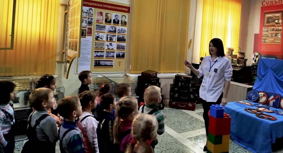 «Мы едем, едем, едем. В далекие края…», – с этой фразы из стихотворения Сергея Михалкова началась встреча в музее истории г. Отрадного для дошколят из детского сада № 7.
