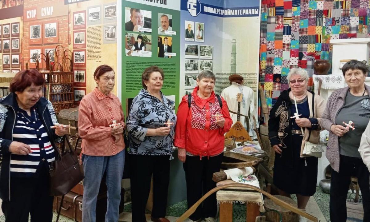 А также каждый из представителей старшего поколения прикоснулся к предметам, которыми пользовались наши предки в домашнем обиходе, поднимали чугунки ухватом, гладили бельё рубелем, перемещали сковороду чапельником.