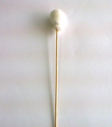 1. Верх палочки намазываем клеем, затем накладываем синтепон, придаем овальную форму заготовке для головы. Делаем несколько витков ниткой, закрепляя ее на палочке.