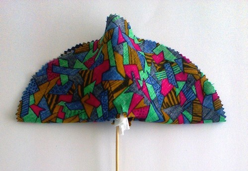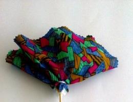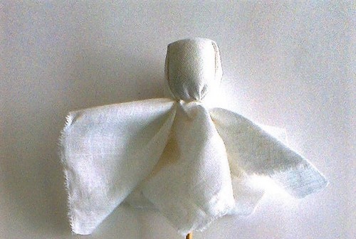 2. Квадрат белой ткани складываем по диагонали, в середину вкладываем палочку.