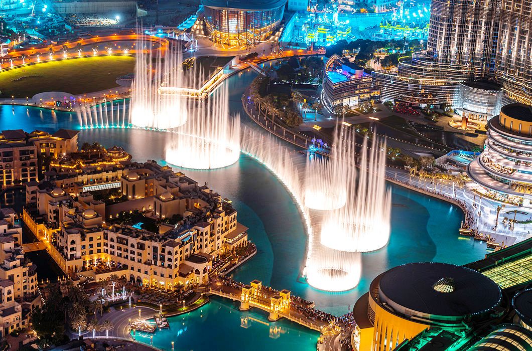 Один из самых известных - фонтан Дубай. Это музыкальный фонтан, расположенный в искусственном озере площадью свыше 12 га рядом с небоскрёбом Бурдж-Халифа в центре города Дубаяй (Объединенные Арабские Эмираты). Один из самых больших и высоких фонтанов в мире. Его длина составляет 275 м., а высота струй достигает 150 метров, что примерно равно высоте 50-этажного здания. Фонтан подсвечен 25 цветными и 6600 точечными прожекторами. Дубайский музыкальный фонтан — поистине феерическая композиция из светы, звука и воды.