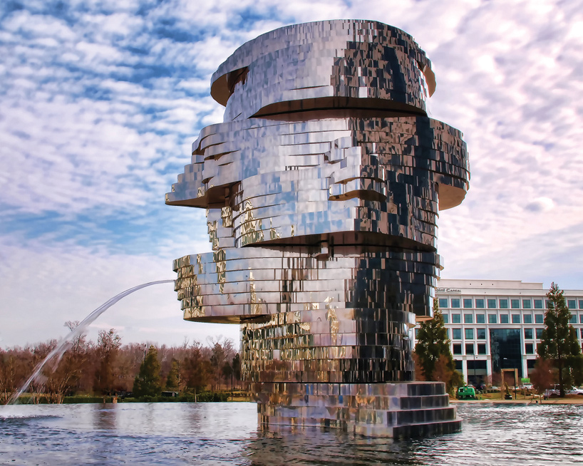 Скульптура-фонтан Дэвида Черны являет собой 3-мерное изображение головы мужского пола, простирающейся на 7,6 м. в высоту. Общий вес нержавеющей конструкции, состоящей из 35 стальных