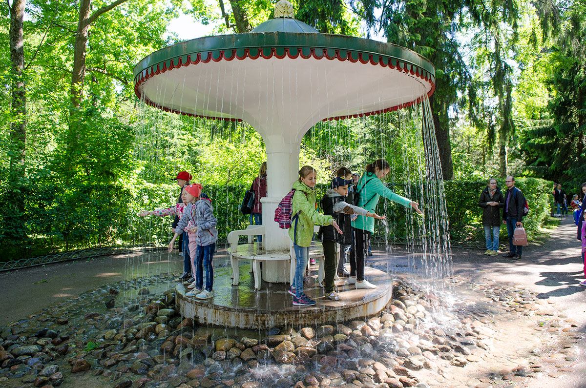 Фонтан «Зонтик» построили в парке к концу XVIII века (фото 6). В советские годы его именовали «Грибком», поэтому «мочильная забава» сохранила оба названия. «Дубок» (фото 7) появился раньше, в 1735 году. Это не отдельный фонтан, а целый комплекс водных развлечений, от которого никому не удается уйти сухим.