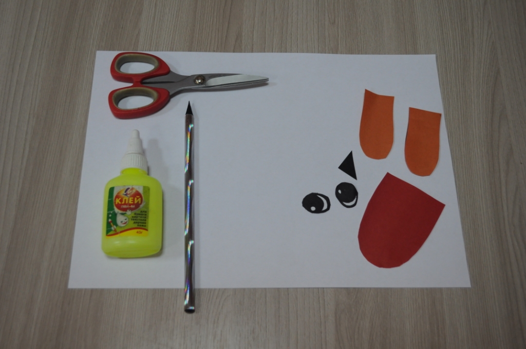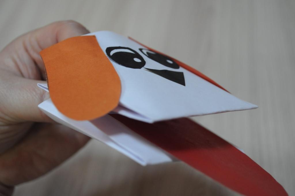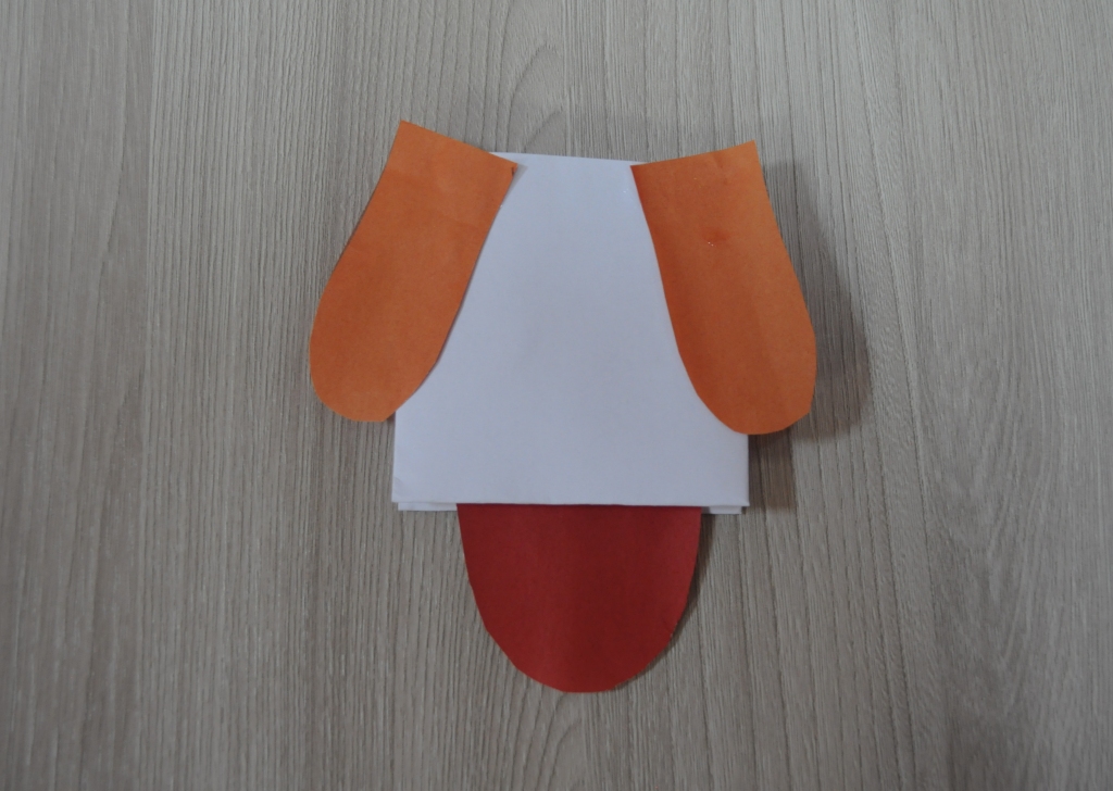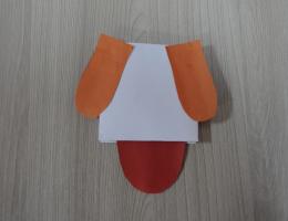 7. Надо добавить язычок, его вырезаем из красной бумаги. Приклеиваем язычок внутрь.