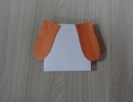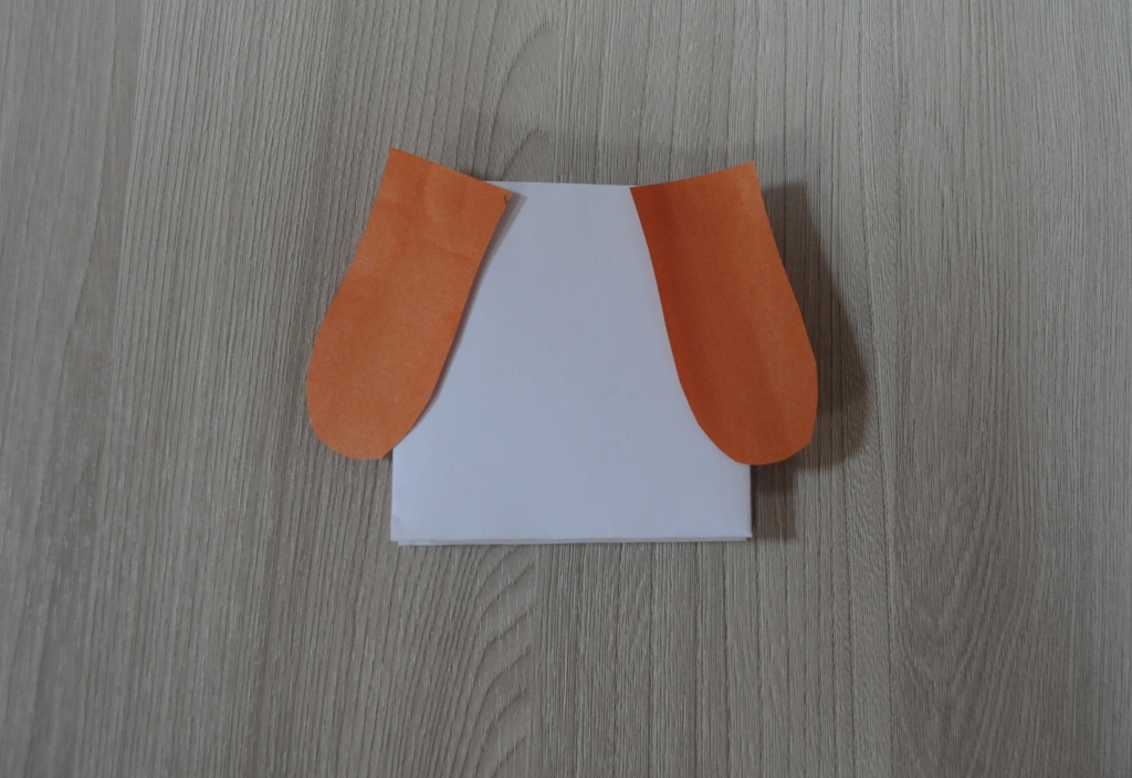 6. Из коричневой бумаги вырезаем пару ушек. Приклеим их поверх белой мордочки.