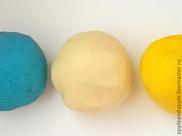 6.Добавляем блестки в некоторые куски, хорошо их смешав с пластилином.