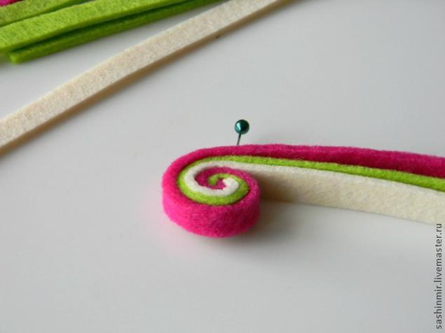 Лучше всего на фото закрепите булавкой, т.к. руки заняты фотиком. Чтобы ролл закрутить, необходимо также сделать "ступеньки".