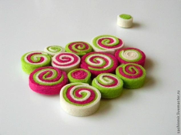 Подставку под чашку из фетра в технике «Суши-роллы» для рабочего стола