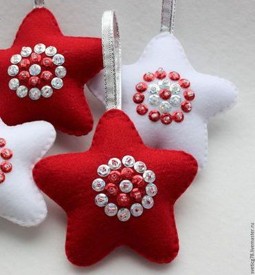 Предлагаем Вам подборку новогодних игрушек из фетра, а также образцы выкроек. Этими игрушками можно украсить не только новогоднюю елку дома, но и использовать в качестве игрушек для развивающей детской елки, которую можно сделать в виде конуса и поставить в детской комнате или вырезать и прикрепить к стене. Фетровые игрушки можно прикрепить с помощью липучки или к елочке пришить пуговицы, а затем на них навешивать игрушки.