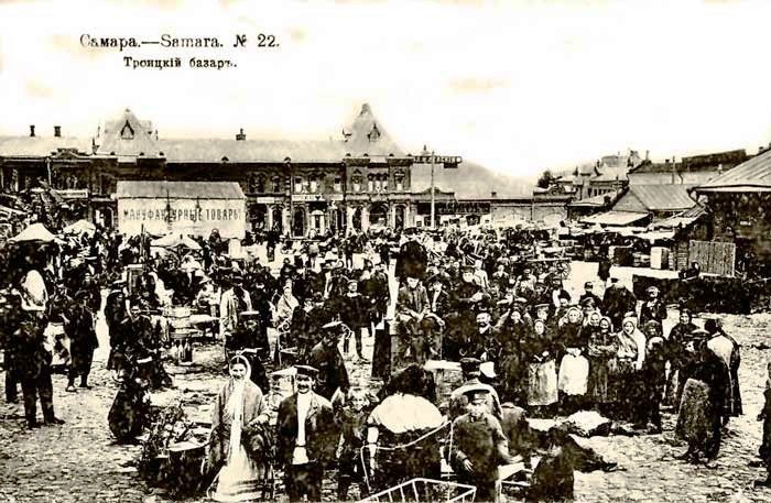 На двух базарных площадях шла бойкая торговля, которая усиливалась во время проведения ежегодных ярмарок (фото 8) – Соборной (осенью), Казанской и Воздвиженской (летом). Основной товар поступал в город по Волге. В конце 70-х гг. 19 века большой потенциал своему развитию город получил от построенной и начавшей функционировать железной дороги. С 70-х гг. 19 века Самара превратилась в центр лесозаготовки и лесопереработки (фото 9). Плоты из бревен сплавлялись в Самару из ближайших областей – Костромской, Симбирской, Казанской.