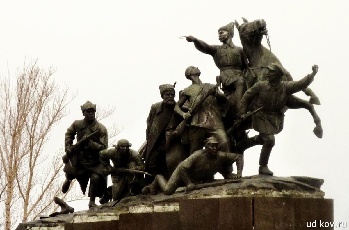 Он не указывает рукой верную дорогу. Матвей Манизер смог передать собственное виденье вождя. Городским властям города настолько понравилась работа скульптора, что они заказали ему новую работу – памятник Василию Чапаеву (фото 5). Говорят, что образ Василия Ивановича Манизер лепил с сына героя гражданской войны, Александра, очень похожего на отца. Прообразом красногвардейца стал башкирский поэт Гайса Юсупов, а женщина с винтовкой напоминает зам. председателя самарского горисполкома Екатерину Ткачеву.