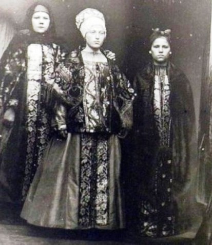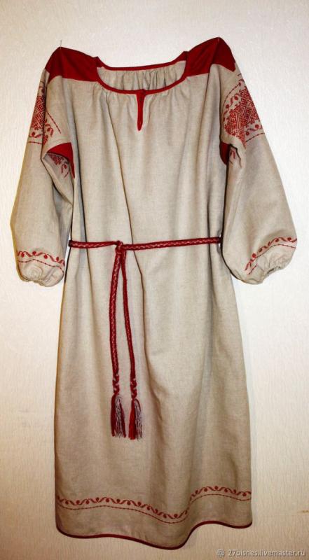 Выйти в свет в одной рубахе крестьянка могла на покос. Знатные женщины имели верхние рубахи — горничные. Горничные рубахи шили из яркой шёлковой ткани, часто красного цвета. Эти рубахи имели длинные узкие рукава с прорезью для рук и назывались долгорукавными (фото 2). Длина рукавов могла достигать 8—10 локтей. Их собирали в складки на руках. Рубахи подпоясывали. Носили их дома, но не при гостях. Рубахи были на любой случай: венчальная, свадебная, молельная, убивальница (девушка носила ее перед свадьбой), покосная, праздничная, будничная, смертянка и т.п.