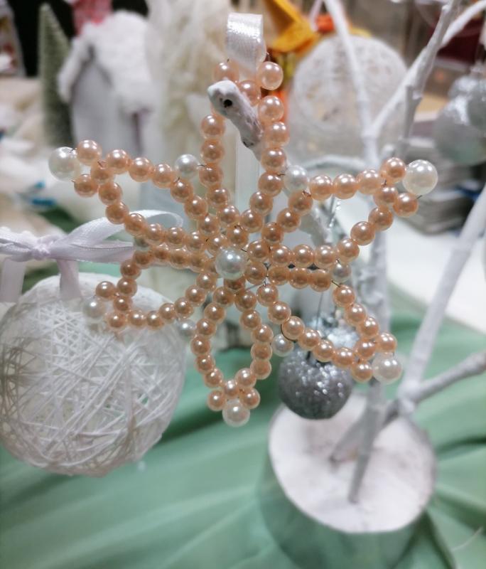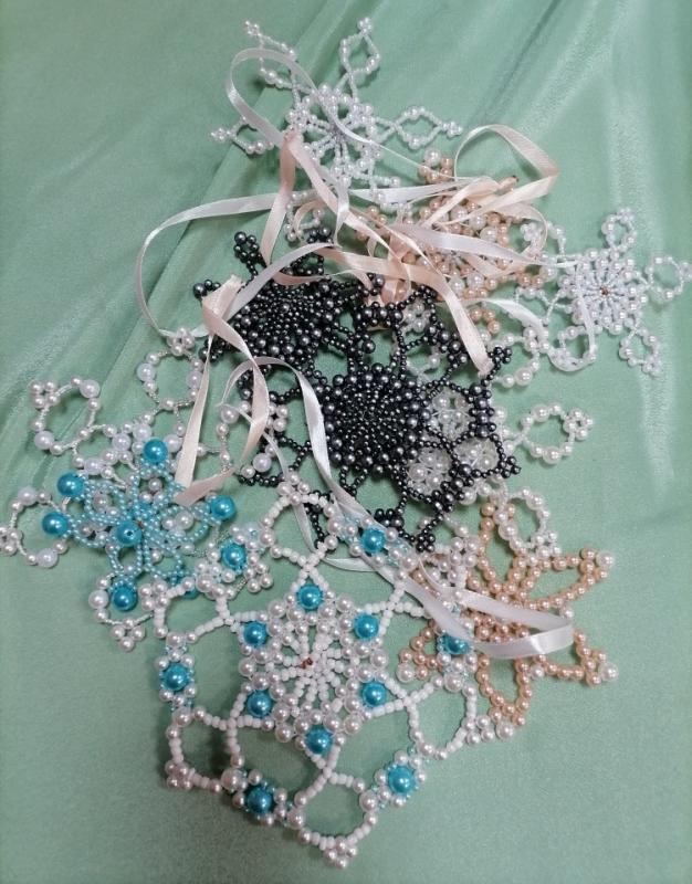Без ответа это приятное событие не осталось. Участники мастерской решили из бусин, бисера и проволоки сделать красивые снежинки, которыми можно украсить ёлочку или интерьер комнаты. За несколько дней новогодних праздников наша коллекция снежинок была готова. И скоро наш подарок отправится в Москву!