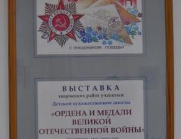 Обучащиеся Детской художественной школы города Отрадного подготовили к 75- летию Великой Победы выставку «Ордена Великой Отечественной войны». Работы выполнены в технике роспись по стеклу. Юные художники 14-15 лет под руководством педагога Денисовой Елены Викторовны оформили 20 орденов.